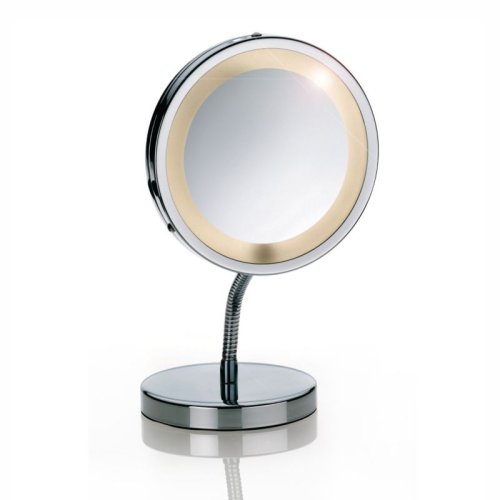 Materiál: pochromovaný kovPrůměr: 15cmVýška: 27,5 cmPrůměr stojanu: 11,5 cm3x zvětšující