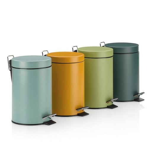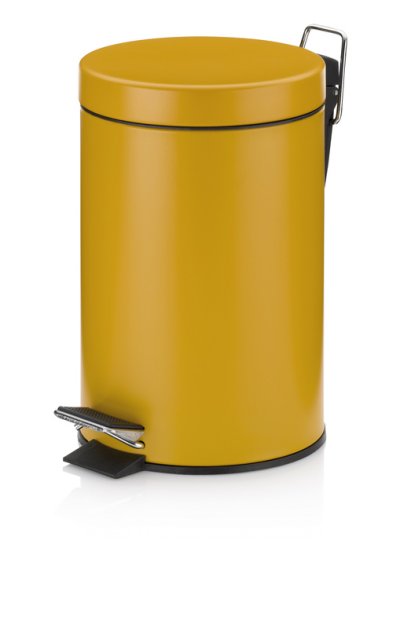 Pro menší odpad v kuchyni nebo koupelně: kovový pedálový koš s matným povrchem v kari žluté. Guma na spodní straně zajišťuje pevný stoj.Vnitřní vědro je vyrobeno z černého plastu a má praktické ucho na přenášení. Odpadkový koš je vysoký 26 cm a má průměr 17 cm. objem 3l. Kov s práškovým nástřikem matný 3L, 17cm , 26cm v