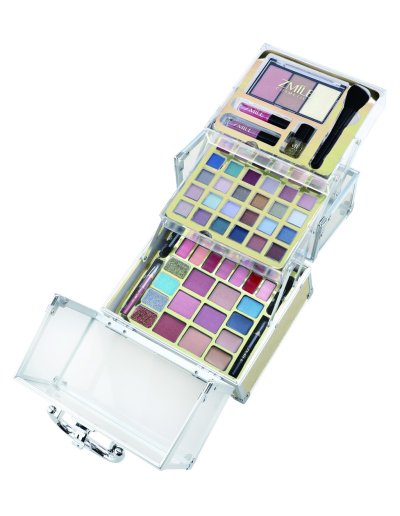 Kosmetický kufřík akrylátový zlatý ‚Glam‘ – celkem 64 ks příslušenství. Obsahuje 30 ks očních stínů, 2xlesk na rty, 1xtřpytivý lak na nehty,1xštětec, 3xoční linky, 7xkrémová rtěnka, 6xštětec, 4xtřpytkový krém na tělo, 4xkrémové oční stíny, 2xoboustranný aplikátor, 1xtužka na oči, 1xtužka na rty, 1xmalý šteteček na rty a 1xmalý štěteček na pudr. Dermatologicky testováno, vyhovuje přísným normám EU.