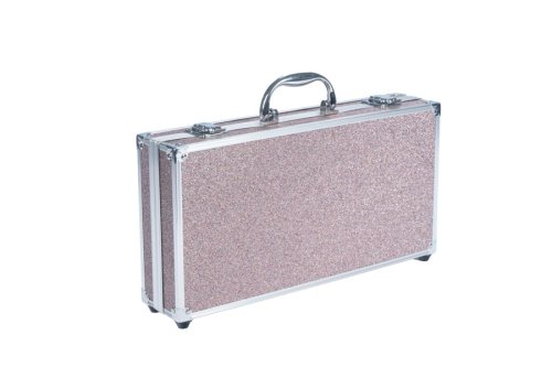 Kosmetický kufřík se zrcátkem. Obsah: 2 lesky na rty, 2 tvářenky, 2 pudry, 1 dvojitá tužka (2 barvy), 30 barev očních stínů, 3 krémové oční stíny, 3 barvy na obočí, 6 lesků na rty, 2 laky na nehty, 5 korektorových barev a 4 různé štětce.