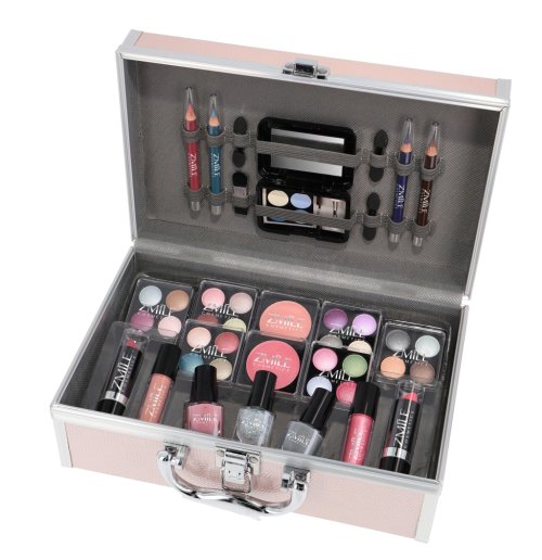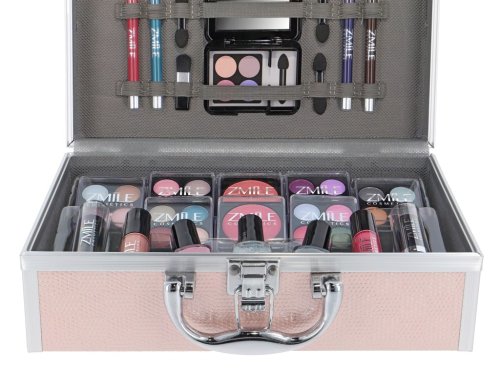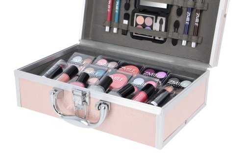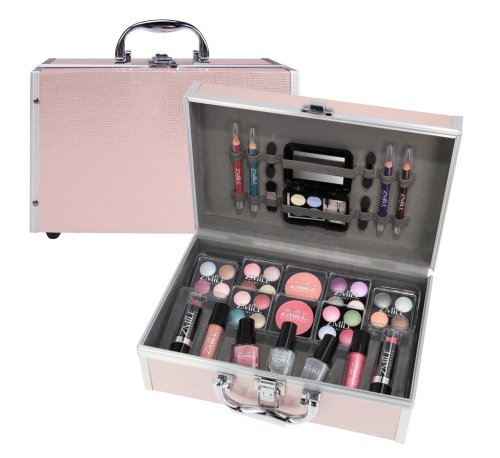 Kosmetický kufřík růžový „Eye-Catcher“ s integrovaným zrcátkem – celkem 42 ks příslušenství. Obsahuje 24× očními stíny ,2xlak na nehty, 1xtř´pytkový lak na nehty,1× tvářenku, 2xrtěnku, 2xlesk na rty, 3× tužku na oči, 1xtužku na oči, 3× oboustranný aplikátor, 1xštětec. Dermatologicky testováno, vyhovuje přísným normám EU.