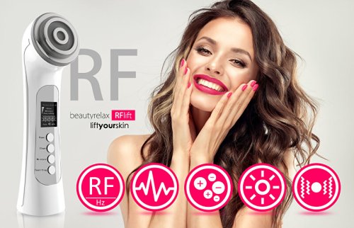 Kosmetický přístroj BeautyRelax RFlift je univerzální pomocník pro komplexní ošetření vaší pleti. Nabízí moderní technologie: radiofrekvence, EMS pulzní terapie, vibrace, fotonová terapie. Vhodný pro všechny typy pleti. Provedete všechny fáze ošetření pleti. Vysoký výkon pro dosažitelné výsledky. Bezpečné a bezbolestné používání. EMS pulzní terapieAplikační hlavice při kontaktu s pletí přenáší jemné elektrické pulzy. Výkon a frekvence elektrických pulzů jsou speciálně upraveny tak, aby umožnily ošetření obličeje. Elektrické pulzy pronikají přes svrchní část pokožky přímo k obličejovým svalům. Kolagenní a elastická vlákna jsou mechanicky stimulována. V oblasti obličeje docílíte zlepšení textury pokožky, jejího tónu a nárůstu elasticity. Pleť má omlazený a prozářený vzhled. VibraceSprávná funkce lymfatického systému platí nejen pro tělesné končetiny, ale také pro náš obličej. Pokud máme lymfu a krevní oběh v pořádku, odvod nečistot z krve probíhá násobně lepším způsobem. Zlepšení krevního oběhu = stimulace lymfatického systému = lepší odvod nečistot a škodlivin z těla = krásná a zdravá pleť. Jednoduchá rovnice, která platí nejen pro obličej, ale pro celé naše tělo. Jemná vibrační masáž patří z technologického hlediska mezi nejjednodušší, ale zároveň velmi účinnou techniku ošetření pleti. Fotonová terapieSvětlo je zjednodušeně viditelná část elektromagnetického záření různé frekvence. Dosahuje různých vlnových délek v intervalu 390 až 760nm (nanometrů). Lidské oko je schopné vnímat světlo o vlnových délkách v rozsahu od 400 do 800nm. Při fotonové terapii proniká světlo do těla jako proud energie ve formě fotonů. Je vědecky prokázáno, že různé vlnové délky světla mají za následek specifické účinky při péči o pleť. Studie ověřily reálný pozitivní terapeutický přínos pro živé tkáně a organismy na buněčné úrovni. BeautyRelax RFlift nabízí funkci červeného a modrého světla. ČERVENÉ SVĚTLO