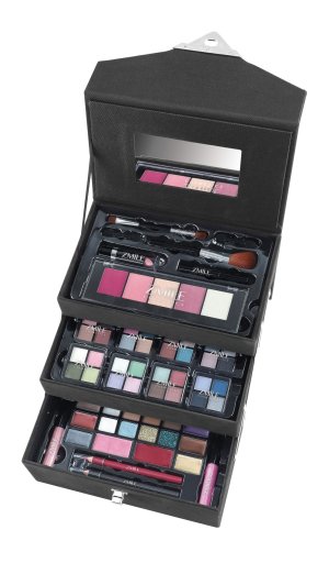 Kosmetický rozkládací kufřík ‚Beauty Case 'Velvety‘ tmavě šedý – limitovaná edice – celkem 72 ks příslušenství. Obsahuje 32 ks očních stínů 3× tvářenka, 2xoční linka, 3xbarva na obočí, 1xvosk na obočí, 8× krémové oční stíny, 4xtřpytkový krém na tělo, 2xkrémová rtěnka, 4xkorektor, 2xlesk na rty, 1× rtěnka, 1xřasenk, 1× tužka na oči, 1× tužka na rty, 1xštětec, 5× oboustranný aplikátor a integrované zrcátko. Dermatologicky testováno, vyhovuje přísným normám EU.