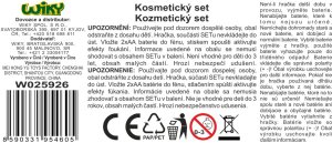 Kosmetický set. Obsahuje brýle, fén, kartáč, malování, rtěnku, parfém. 2xAA baterie fén, nejsou součástí. Aktivace foukání stiskem tlačítka.