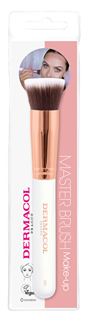 Kosmetický štětec na make-up v barvě rose gold a bílá je vhodný k aplikaci tekutého nebo krémového make-upu. Zajistí přesnou a precizní aplikaci make-upu a stane se tak spolehlivým pomocníkem při každodenním líčení. Štětec je vyrobený ze syntetických vláken.