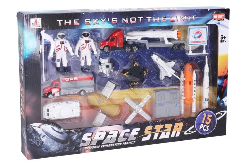 Kosmonaut set . Velikost kosmonauta 7 cm. Obsahuje 2 kosmonauty a různé vesmírné dopravní prostředky.