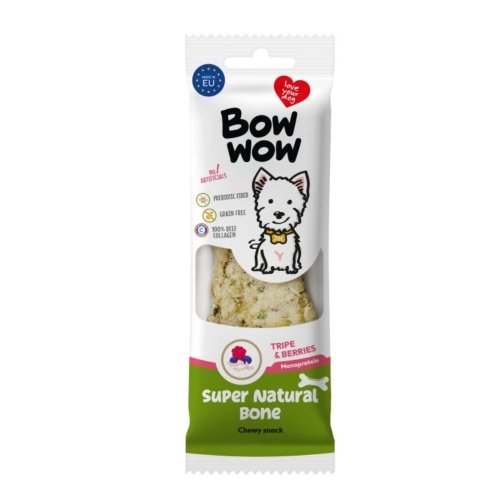 Dopřejte svému psovi výjimečnou pochoutku inspirovanou přírodou. Bow Wow Super naturální kost s hovězími dršťkami a lesním ovocem kombinuje vysoký obsah kolagenu, neodolatelnou chuť drštěk a sílu přírodních superpotravin. Tento funkční pamlsek je ideální pro zdravé mlsání, které podporuje klouby, trávení i přirozenou imunitu psa.