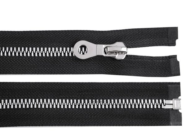 Kostěný zip se v této šíři používá na bundy, kabáty, mikiny či svetry. Plastové zoubky imitují kovový zip. Kovový jezdec je opatřený aretací autolock, což je automatická brzda, která brání samovolnému rozepínání zipu.
