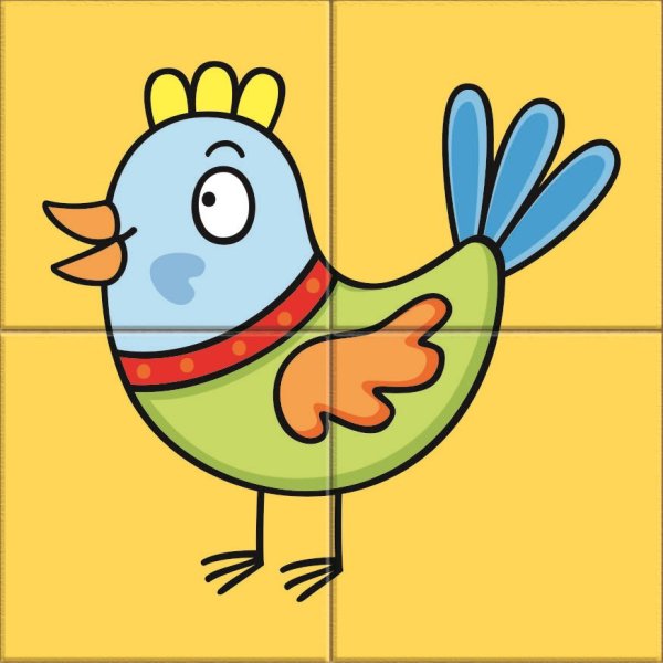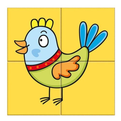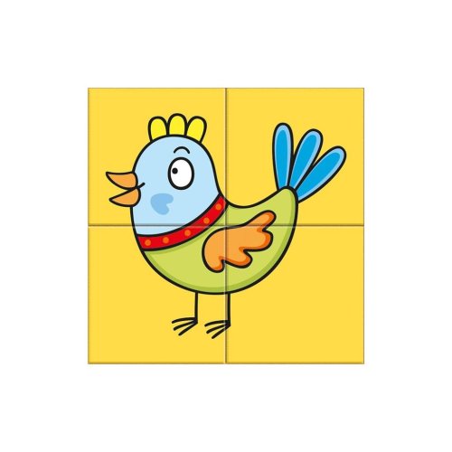 Dřevěné kostičky pro nejmenší děti, které obsahují 4 dílky s jednoduchými dětskými motivy.