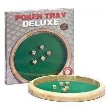 Máte chuť na kolo kostkového pokeru? Pak je tento exkluzivní dřevěný tác na kostky to pravé. Průměr 45 cm a 5 kostek o délce hrany 2,2 cm