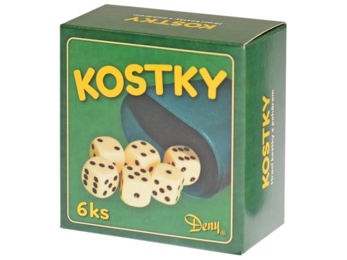 Hrací kostky bílé barvy, s kterými si zahrajete mnoho zajímavých a zábavných her. Balení obsahuje 6 ks kostek a kelímek. Baleno v krabičce.