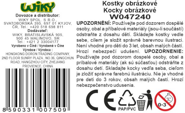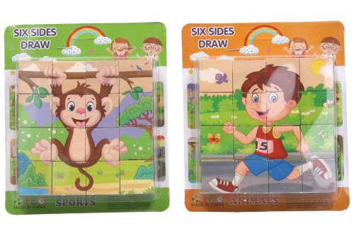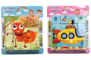 Kostky obrázkové dřevěné. Rozměry složených kostek 12x12 cm. 16 kostek, více variant
