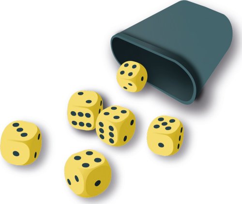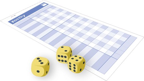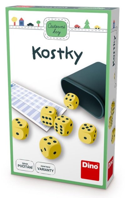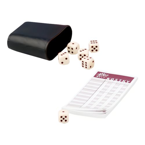 Hra kostky. Balení obsahuje 6 bodových kostek, 1 kelímek, 1 sadu záznamových tabulek a pravidla. Hra pro 2 hráče a více. Vhodné od 7 let.