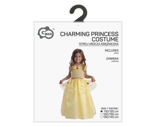 Šaty jsou nabízeny ve třech velikostech, přičemž velikost 110/120 cm je určena pro menší děti, které se chtějí proměnit v princezny během karnevalových oslav nebo jiných slavnostních příležitostí. Kostým obsahuje pouze samotné šaty, což umožňuje snadné kombinování s doplňky podle vlastního uvážení. Díky svému provedení a barevnému ladění je tento kostým vhodný zejména pro malé slečny, které mají rády pohádkové postavy a chtějí se cítit výjimečně.