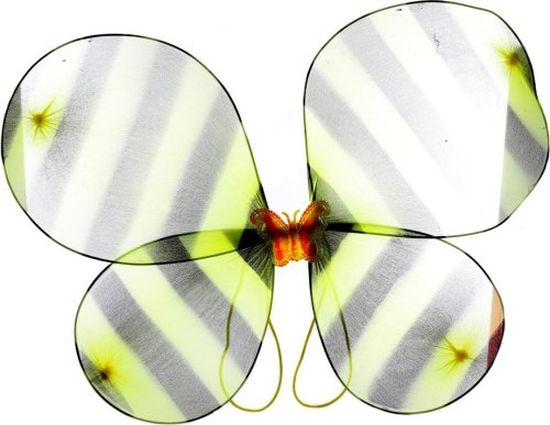 drátěná konstrukce křídel, výplň křídel z elastického jemného materiálu, balení obsahuje: křídla, sukýnku, hůlku a čelenku s motýlky.