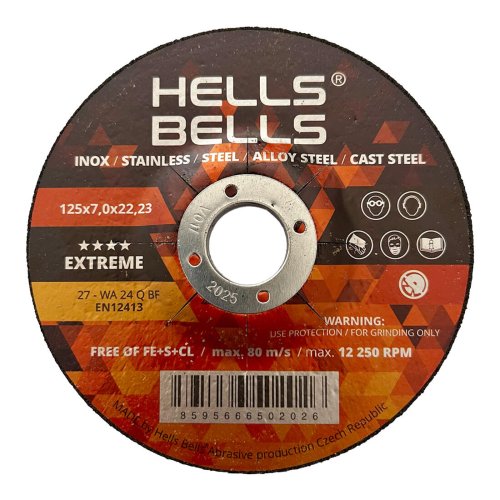Brusné kotouče Hells Bells s bakelitovým pojivem jsou vyrobeny z prémiového korundového zrna, které je zárukou agresivního brusu a dlouhé životnosti.