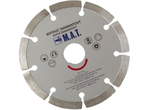 průměr kotouče: 230 mm průměr otvoru: 22,2 mm (součástí balení je redukční kroužek z 22,2 na 20 mm) pevné uchycení diamantových segmentů k nosnému disku kotouče