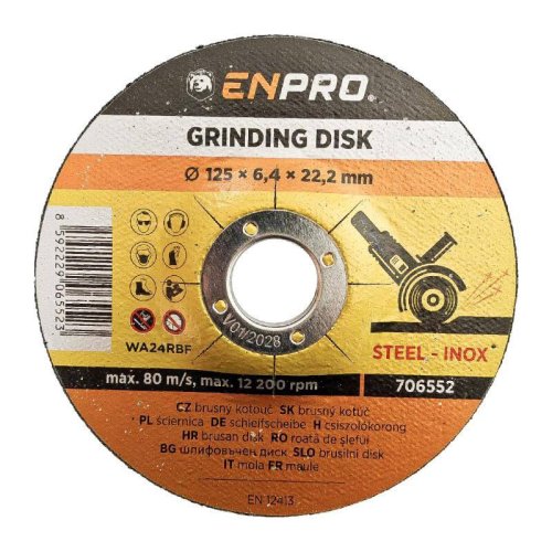 druh zrna: korund provedení: vyhnutý pojivo: syntetická pryskyřice na bázi aldehydu pro zvýšení pevnosti armováno třívrstvou sklotextilní vložkou max. pracovní rychlost: 80 m/s