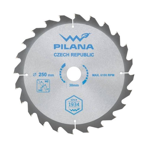 kvalitní pilový kotouč na dřevo s TCT plátky (slinutý karbid wolframu) tělo kotouče vyrobeno z kvalitní uhlíkové oceli (HRC4) plátky z SK výrazně zvyšují životnost pilových kotoučů zářezy do vnitřní …