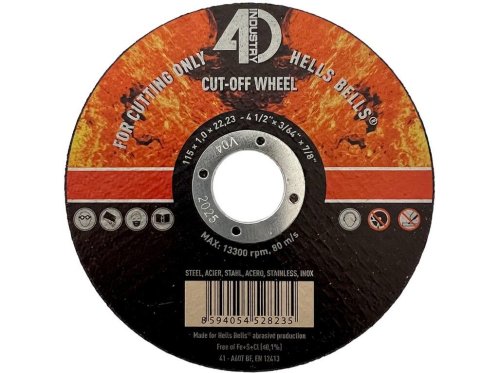 Řezné kotouče Hells Bells s bakelitovým pojivem jsou vyrobeny z prémiového korundového zrna, které je zárukou rychlého řezu a dlouhé životnosti. Neobsahují stopy železa, chlóru a síry. Jsou určeny pro řezání uhlíkových ocelí, konstrukčních ocelí a nerezových ocelí.