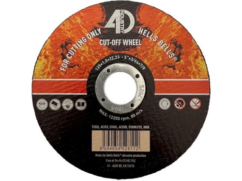 Řezné kotouče Hells Bells s bakelitovým pojivem jsou vyrobeny z prémiového korundového zrna, které je zárukou rychlého řezu a dlouhé životnosti. Neobsahují stopy železa, chlóru a síry. Jsou určeny pro řezání uhlíkových ocelí, konstrukčních ocelí a nerezových ocelí.