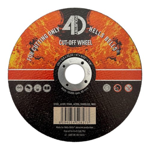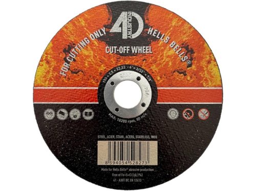 Řezné kotouče Hells Bells s bakelitovým pojivem jsou vyrobeny z prémiového korundového zrna, které je zárukou rychlého řezu a dlouhé životnosti. Neobsahují stopy železa, chlóru a síry. Jsou určeny pro řezání uhlíkových ocelí, konstrukčních ocelí a nerezových ocelí.