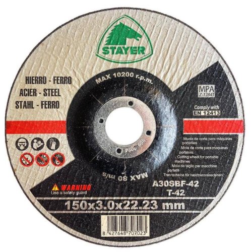 kotouč řezný na kov Standard, Stayer profesionální řezný kotouč na nerezovou ocel, vysoce pevnou ocel, železo a železné materiály zapuštěný střed průměr otvoru: 22,23 mm geometrie: T42 max. pracovní …