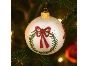 Koule sklo 80mm na stromeček mašle s girlandou matná mix, barevná
