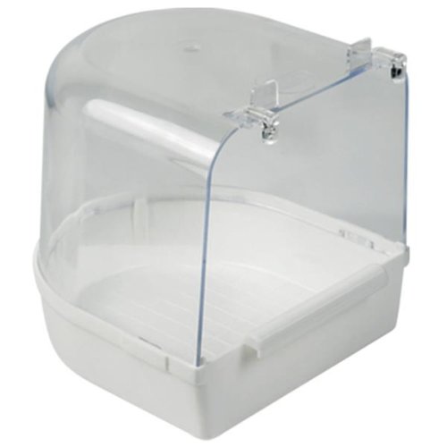 Plastová půlkruhová koupelna do dvířek pro malé papoušky. Rozměry koupelny: 13 cm x 14,5 cm x 13 cm.