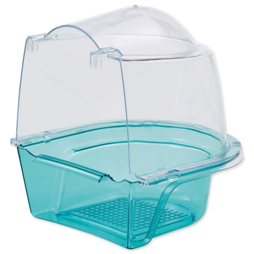 Plastová oválná koupelna s průhledným poklopem.