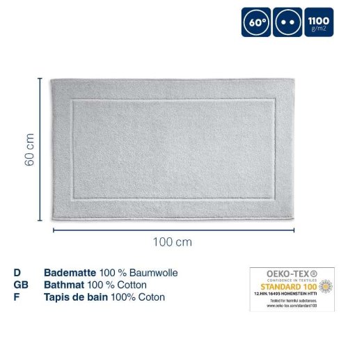 Příjemná pro mokré nohy: měkká a skládací předložka do vany Ladessa ve stříbrno-šedé barvě ze 100% bavlny. Koupelnová předložka má rozměry 100 x 60 cm a lze ji prát do 60°C. 100% bavlna 60x100cm 1100 gsm