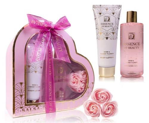 Obsahuje: gel sprchový 300ml, mléko tělové 130ml, 3x4g fizzer ve tvaru růže, vůně: třešeň a růže