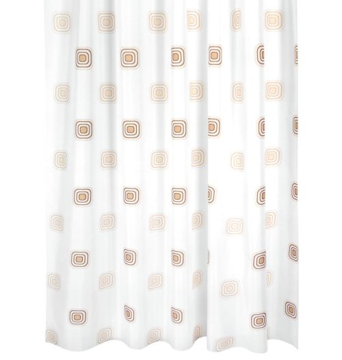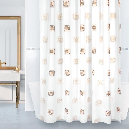 Koupelnový závěs materiál 100% Polyester délka 200 cm praní na 30°C mírný postup nesušit v sušičce žehlit maximálně na 110°C na horní straně otvory pro háčky součástí výrobku 12 háčků na zavěšení