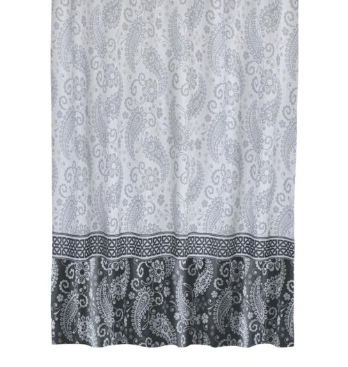 Koupelnový závěs materiál 100% Polyester délka 200 cm praní na 30°C mírný postup nesušit v sušičce žehlit maximálně na 110°C na horní straně otvory pro háčky součástí výrobku 12 háčků na zavěšení