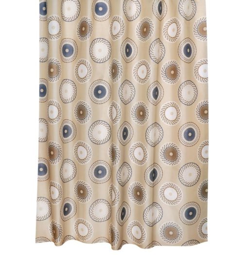 Koupelnový závěs materiál 100% Polyester délka 200 cm praní na 30°C mírný postup nesušit v sušičce žehlit maximálně na 110°C na horní straně otvory pro háčky součástí výrobku 12 háčků na zavěšení