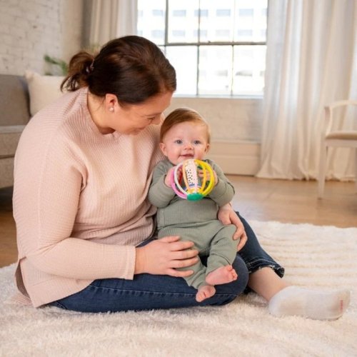 Kousátko ve tvaru míčku je ideální nejen k uchopení, třesení a kutálení, ale napomáhá také tlumit bolest dásní při prořezávání prvních zoubků.
