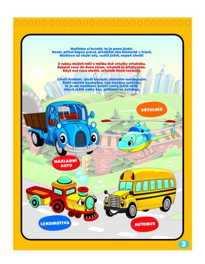 Stačí jen voda a kouzlo začíná. Tento kouzelný blok s motivem dopravy potěší všechny malé fanoušky aut, vlaků, letadel i raket. S kouzelnou vodní tužkou děti objevují barevné dopravní prostředky a učí se přitom poznávat svět kolem sebe – zábavně, kreativně a bez nepořádku. Obsahuje 4 kouzelné obrázky s dopravními prostředky, 12 veselých říkanek a 1 kouzelnou vodní tužku.