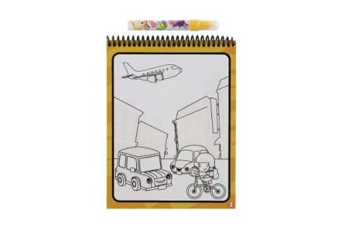 Čisté malování! Tyto "vodní" omalovánky obsahují čtyři znovupoužitelné obrázkové stránky a znovuplnitelné vodní pero. Použijte vodní pero, jehož tahy se zobrazí barvy na jednotlivých obrázcích, po uschnutí stránky obrázek opět zmizí. Rozměr bloku: 17 x 23 x 2 cm Vhodné pro děti od 3 let
