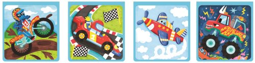 Omalovánky disponují čtyřmi obrázky s motivem dopravních prostředků