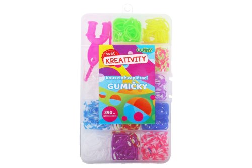 Upleť si svůj náramek, který se bude hodi k tvému outfitu. Skvělá zábava pro volné chvíle. Vytvořte si šperk vskutku originální, který nebude mít nikdo jiný! Kouzelné zaplétací gumičky v plastové krabičce. Balení obsahuje: 390 ks gumiček - mix barev. Součástí je 2x háček na pletení + svorky k zakončení + pletací stav.