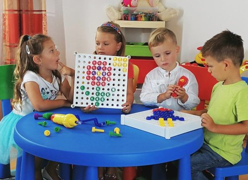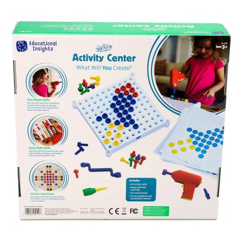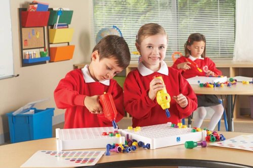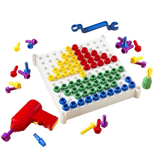 Velká kreativní stavebnice pro děti od 3 do 7 let. Tvořivá šroubovací mozaikou, nenechá dětské ruce zahálet při tvorbě různých vzorů z velkých barevných šroubů. Sada obsahuje funkční el.šroubovák i ruční nářadí a různé nástavce pro pestré zábavné hraní. Spousta barvených předloh pomůže dětem ve tvoření, hlavně na začátku používání. Rozvíjí dětské schopnosti rozeznávání barev a jejich jemnou motoriku. Děti budou milovat pestrobarevné vzory a zvuky opravdového funkčního šroubováku. Vyzkouší si jaké to je pracovat s opravdovým, ale bezpečným nářadím. Důležitá je také možnost udržovat hračku hygienicky čistou, díky kvalitním plastovýcm materiálům.Sada obsahuje mnoho vzorů od základních tvarů po složitější, kde si děti vyzkouší poznávání barev. Při sestavování vzorů se zároveň učí počítat, aby barevné šrouby zapadly přesně na správné místo a vytvořily vybraný tvar nebo vzor. Vzory jsou na velkých laminovaných kartách, které se snadno čistí. Poslední karta obsahuje slepý bílý vzor, který můžete využít pro vytvoření vlastní předlohy podle vaší fantazie a děti se obrázek mohou pokusit sami ze šroubů sestavit.Pro potrénování ručiček, zlepšení jejich koordinace a jemné motoriky poslouží manuální šroubovák, který je součásí sady, do kterého lze zasunout všechny 3 nástavce z vrtačky. K utažení šroubů mohou děti využít i velký plastový klíč. Malí kutilové se tak seznámí a vyzkouší si práci instalatérů, truhlářů nebo jiných řemeslníků s různými nástroji. Rozměr hrací desky pro skládání obrázků je 28x28 cm a obsahuje 100 otvorů.Díky více druhům montážního nářadí si s celou sadou může hrát více dětí a spolupracovat, což je bude bavit ještě víc. Při společné práci na sestavování vzorlů se učí základům komunikace a mohou si rozdělit úkoly (Díky více druhům montážního nářadí si s celou sadou může hrát více dětí a spolupracovat, což je bude bavit ještě víc. Při společné práci na sestavování vzorlů se učí základům komunikace a mohou si rozdělit úkoly Díky více druhům montážního nářadí si s celou sadou může hrát více dětí a spolupracovat, což je bude bavit ještě víc. Při společné práci na sestavování vzorlů se učí základům komunikace a mohou si rozdělit úkoly (např. zavrtat každý jinou barvu šroubů), aby jim šla práce lépe od ruky.Děti se baví a zároveň učí:- rozeznávat barvy- počítat- logickému myšlení- tvořivosti- zlepšit motoriku a zručnostŠroubovací mozaika Kouzelný šroubovák® patří mezi nejoblíbenější hračku v anglických školkách.Věk: 3 - 7 letBALENÍ OBSAHUJE:1 elektrická vrtačka3 vrtací nástavce (plochý, křížový, maticový)120 plastových šroubů (v 5 barvách)1 pracovní deska20 barevných karet s předlohouRukojeť šroubovákuOboustranný klíčČeský a slovenský návodVýrobek vyžaduje 3x AA baterie (nejsou součástí balení)