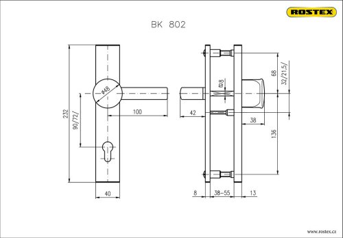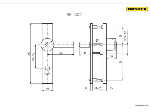 Bezpečnostní kování 802/90 mm je určeno pro vstupní dveře otevírané dovnitř i ven, doporučujeme použít cylindrickou vložku ve 3. BT odolnou proti odvrtání.