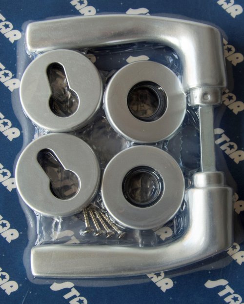 Rozetové kování pro interiérové dveře. Kování v provedení rozeta v praktickém blistru s kompletním spojovacím materiálem k upevnění.