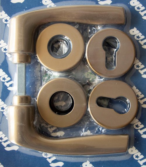 Rozetové kování pro interiérové dveře. Kování v provedení rozeta v praktickém blistru s kompletním spojovacím materiálem k upevnění.
