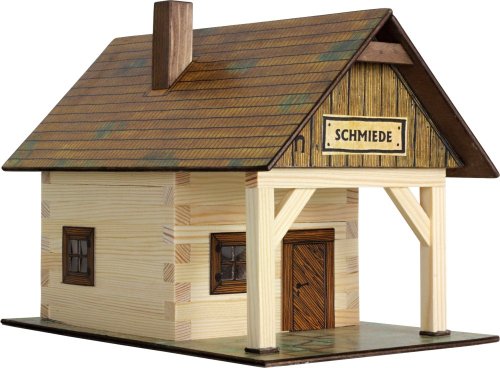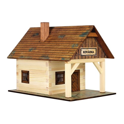 Dřevěná slepovací stavebnice KOVÁRNY, materiál je smrkové dřevo a překližka. Model obsahuje přesné díly, které sestavujete a slepujete. Dřevěné hranoly mají průřez 9x9 mm. Český výrobek.