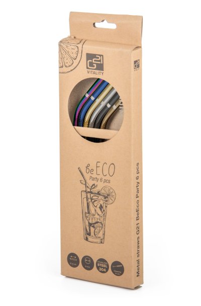 Pořiďte si elegantní, odolné, stylové a především ekologické slámky na pití z nerezu. V sadě najdete 6 zahnutých nerezových brček G21 BeEco Party o průměru 6 mm a délce 21,5 cm a kartáček na čištění. V nabídce máme i brčka rovná, prohlédnout si je můžete zde.
