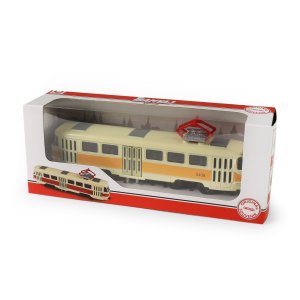 Originální kovová retro tramvaj T3 s měřítkem 1:87, která jezdí na zpětný chod. Délka tramvaje je cca 16 cm a prostřední dveře je možné manuálně otevřít. Jedná se o nejpočetněji vyráběný tramvajový vůz na světě. Takže ty, jako správný fanda těchto sběratelských kousků ji rozhodně musíš mít!