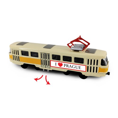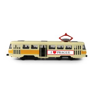 Originální kovová retro tramvaj T3 s nápisem PRAGUE a měřítkem 1:87, která jezdí na zpětný chod. Délka tramvaje je cca 16 cm a prostřední dveře je možné manuálně otevřít. Jedná se o nejpočetněji vyráběný tramvajový vůz na světě. Takže ty, jako správný fanda těchto sběratelských kousků ji rozhodně musíš mít!