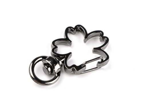 Designová kovová karabina má tvar čtyřlístku, je otočná.