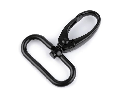 Černá kovová karabina je vhodná na upevnění popruhů k taškám a kabelkám. Můžete ji použít také na výrobu vodítek pro psy. Je otočná. Karabina je z nemagnetického kovu, magnetický je pouze šroubek uprostřed.